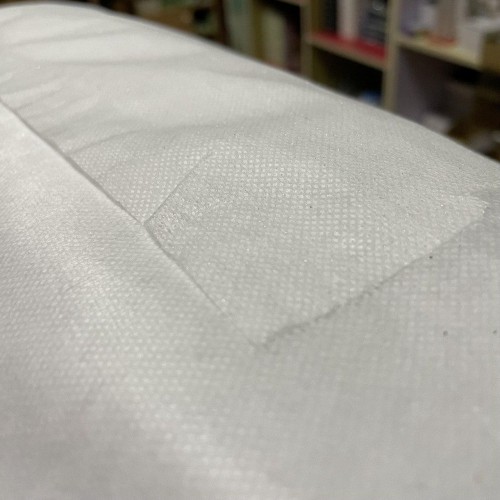 На дотик м'який, ніжний матеріал з відчутним нанесенням клейового шару з виворітного боку. У роботі вимагає дбайливого ставлення себе, боїться грубого механічного впливу, може втратити однорідну структуру полотна (розірватися).